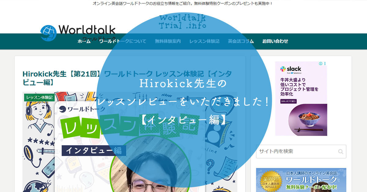 現在ワールドトークの講師として活躍されているHirokick先生ですが、実は英語が大の苦手だったとのこと。そこで今回、「どうやって英語を勉強したのか」「英語が話せる楽しさは?」など、英語学習を進めるうえで聞いてみたい!と感じていたことをインタビューいただきました。