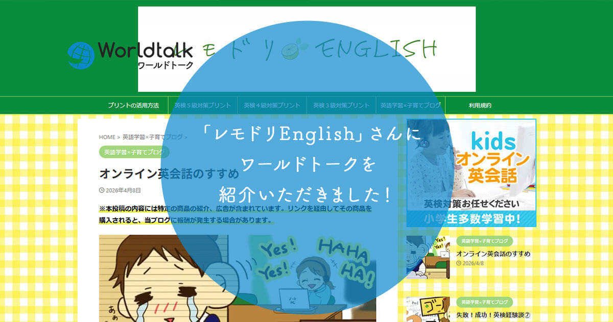 塾や高額教材に頼らず、家庭で工夫しながら英語学習に取り組む方法や英検対策プリントを発信する「レモドリEnglish」さんにワールドトークをご紹介いただきました。