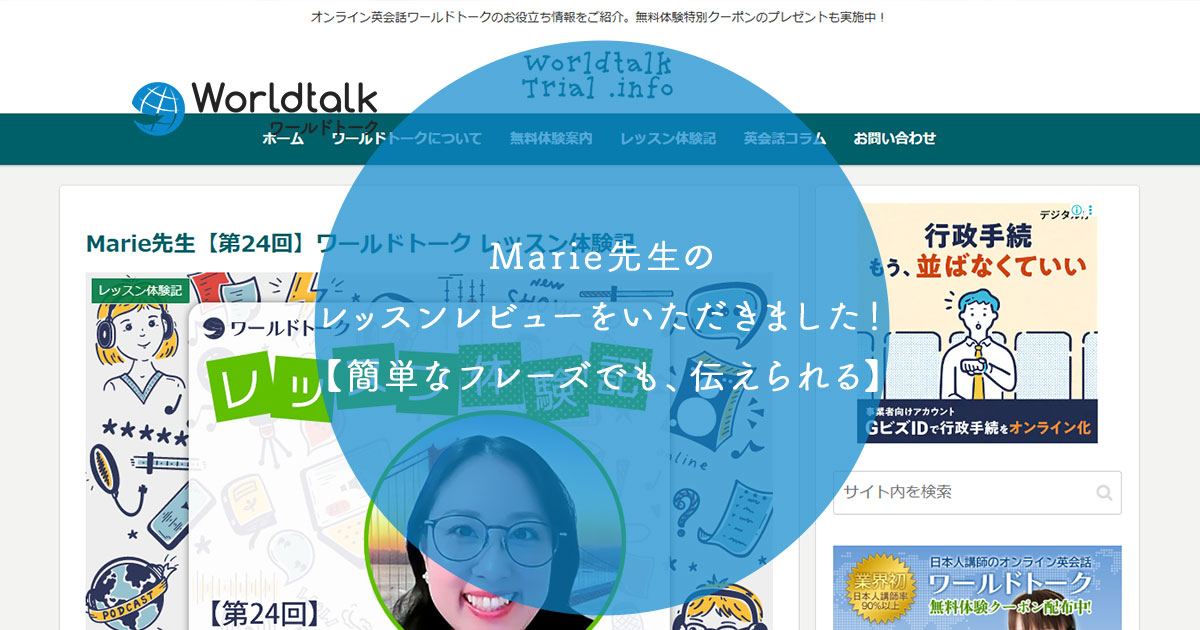 Marie先生のレッスンレビューをご掲載いただきましたので、ご紹介いたします。