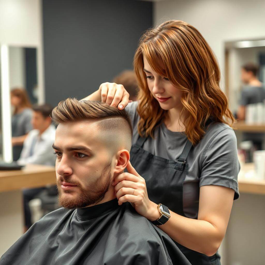 (A) A man is having his hair cut.