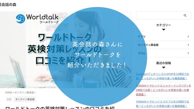 初心者におすすめのオンライン英会話スクールとして、ワールドトークをご紹介いただきました!