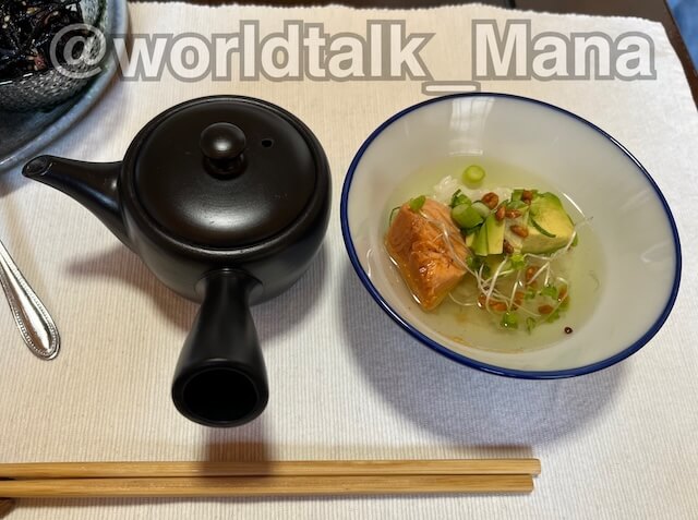 ・このお茶漬けは鮭とアボカドがトッピングされてます