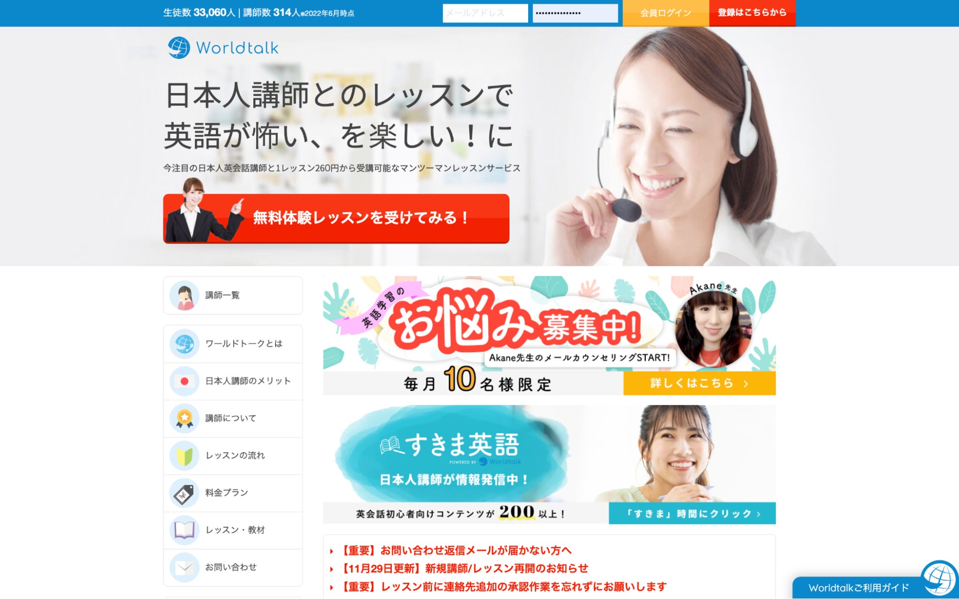 ワールドトークでは、今後もより英語の上達につながる学習環境の提供をするために、尽力させていただきます。